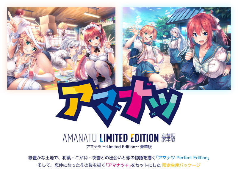 あざらしそふとの夏の物語「アマナツ」の続編が、 「アマナツ~PerfectEdition~」とセットになって新登場! これからアマナツの世界に触れてもらうのにピッタリのセットになっています。 さらに豪華版には、ぎん太郎描き下ろしのタペストリーが付属します! あざらしそふとがお届けする賑やかでイチャイチャな、夏の物語をぜひお楽しみくださいませ。 【収録タイトル】 (1)アマナツ~Perfec…
